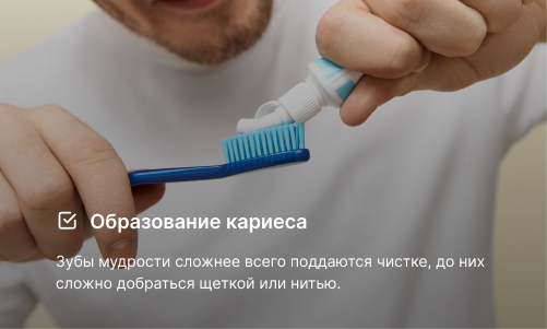 Зубы мудрости сложнее всего поддаются чистке, до них сложно добраться щеткой или нитью. В результате образуется кариес и, если его своевременно не обнаружить, может развиться инфекция.